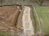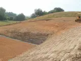 - A temporary drainage swale and storm water detention basin was installed by Kwest Group to divert storm runoff around the disturbed areas of the site